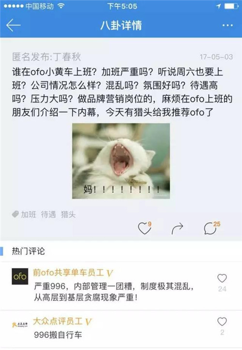 對于此爆料,ofo資深副總裁南楠也在其后回應(yīng):如果你真是一名有正義感的ofo員工,希望聯(lián)系我,公司會認真處理你反饋的問題。