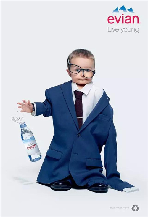 今年依云寶寶的核心創(chuàng)意在于 Oversize,即喝了依云水,就能像嬰兒一樣看待這個世界,在視覺呈現(xiàn)上,它們讓寶寶們穿上超大碼的成人時(shí)裝。如果說衣服代表了身份的話,這些穿著時(shí)裝造型的寶寶正是依云現(xiàn)在想要吸引的年輕顧客,而用 Evian 的全球營銷總監(jiān) Patricia Oliva 的話說,這些年輕人很可能并沒有看過當(dāng)年的依云寶寶電視廣告。