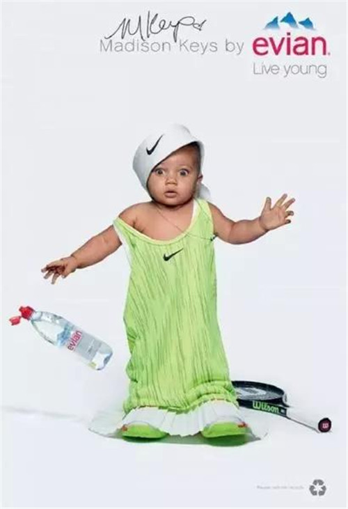 針對戶外、數(shù)字和社交網(wǎng)絡(luò)的創(chuàng)意則主要集中在一個 Evian Young Team 的概念,一個由依云代言人莎拉波娃、Stan Wawrinka、Lucas Pouille、Madison Keys 以及高爾夫球員 Lydia Ko 等人組成的團(tuán)隊(duì)來拍攝廣告的主要視覺:喝了依云水之后,他們都換上一套 Oversize 的運(yùn)動服,“變成了嬰兒”。