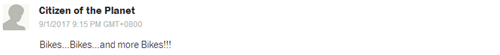 網(wǎng)友Citizen of the Planet:“自行車……自行車……我要更多自行車?。?!”