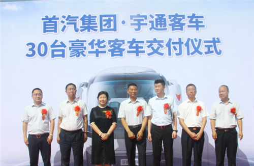 8月4日上午,鄭州宇通客車股份有限公司(簡稱為:宇通客車)與北京首汽(集團)股份有限公司(簡稱為:首汽集團)在首汽集團舊宮停車場舉行了交車儀式,30輛宇通豪華客車正式交付。首汽集團常務(wù)副總經(jīng)理高捷、宇通集團黨委副書記李遠征等領(lǐng)導(dǎo),以及媒體代表共同見證了這一重要時刻。