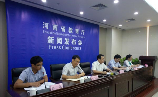 8月23日上午9時,河南省教育廳召開新聞通氣會,通報了《河南省深化考試招生制度改革實施方案》(以下簡稱《方案》)的有關(guān)情況?! “凑铡斗桨浮芬?,我省從2018年秋季入學的普通高中一年級學生開始啟動高考綜合改革,考生總成績由統(tǒng)一高考的語、數(shù)、外3科成績和高中學業(yè)水平3個選考科目成績組成。招生錄取實行基于統(tǒng)一高考成績和高中學業(yè)水平考試成績、參考學生綜合素質(zhì)評價擇優(yōu)錄取機制?! ?strong>總體目標 到2020年,初步形成分類考試、綜合評價、多元錄取的考試招生模式,進一步健全促進公平、科學選才、監(jiān)督有力的體制機制,構(gòu)建順應(yīng)時代要求、符合教育規(guī)律和河南省情的考試招生制度?! ?strong>主要任務(wù)