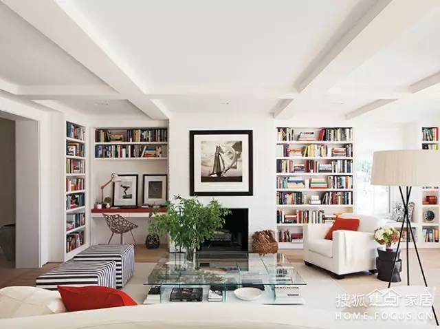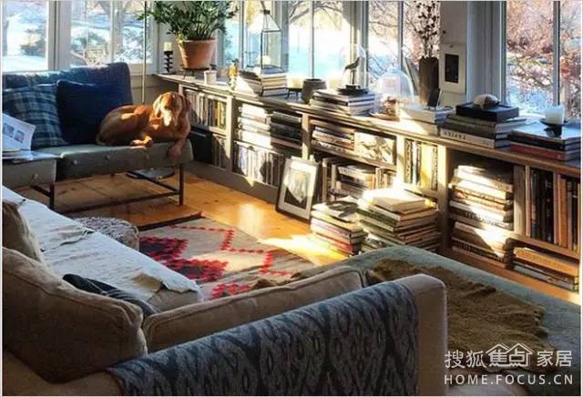 如果客廳有大落地窗,直接把客廳的沙發(fā)面向窗戶擺放。在窗戶前面擺放低矮的書架,看書看累了,就欣賞一下遠方的風(fēng)景。