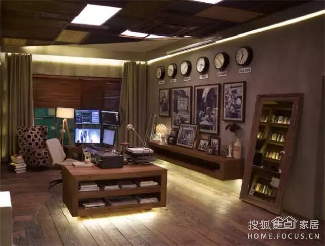 幾個沙發(fā)和壁爐圍在一起,看上去暖暖的。另外,壁爐也能起到輔助照明的作用。