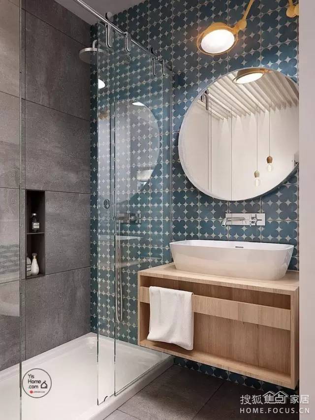 ▲ 補(bǔ)救妙招:后期多設(shè)光源,比如浴柜的鏡前燈。有的鏡前燈是自帶電源的,十分方便,或者直接安一個臺燈固定在墻面上,款式、顏色最好還是和衛(wèi)生間的風(fēng)格保持一致。也可將浴霸燈泡換成節(jié)能燈管。