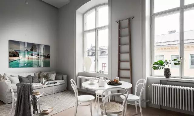 白色的餐桌有夠成用餐區(qū)域,窗外優(yōu)美的街景是最好的裝飾。用餐空間充滿北歐風(fēng)格的簡(jiǎn)約美,餐椅優(yōu)美的曲線柔化了空間。