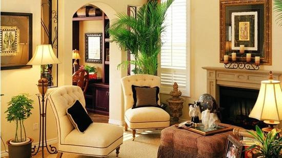 客廳是家中最常放置室內(nèi)植物的空間,客廳配置植物,首先應(yīng)著眼于裝飾美,數(shù)量不宜多,太多不僅雜亂,而且生長(zhǎng)不好。植物的選擇還需注意大小搭配。