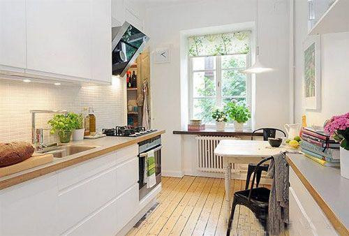 一般家庭的廚房多采用白色或淺色裝潢以及不銹鋼水槽的設(shè)置,色彩豐富的植物可以柔化硬朗的線條,為廚房注入一股生氣。通常廚房位于窗戶較少的朝北房間,由于陽(yáng)光少,應(yīng)選擇喜陰的植物,如廣東萬(wàn)年青和星點(diǎn)木之類。而且廚房是操作頻繁、物品零碎的工作間,煙和溫度都較大,因此不宜放大型盆栽,而吊掛盆栽則較為合適。