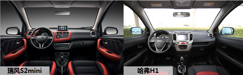 內(nèi)飾設(shè)計(jì)方面,瑞風(fēng)S2mini采用紅黑配色,給人活潑時(shí)尚之感。且中控臺(tái)造型簡(jiǎn)潔,懸浮式顯示屏的點(diǎn)綴更顯科技感。哈弗H1的內(nèi)飾設(shè)計(jì)雖同走簡(jiǎn)潔風(fēng),但其中控臺(tái)銀色面板卻稍顯老氣,顯然與90后追逐新鮮感的個(gè)性不符。
