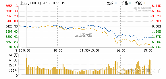 在連續(xù)反彈400點后,今日滬指在60日均線附近遭遇阻力,午后跳水,收盤重挫3.06%,退守至3320.68點。創(chuàng)業(yè)板指更是大跌6.63%。兩市成交量放大至1.17萬億元。除銀行股與保險股外,行業(yè)板塊全線下跌,逾800只股票跌停。