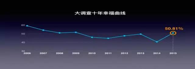 幸福感“V”型反轉(zhuǎn),超半數(shù)中國居民在2015年感覺生活幸福,達到五年來大調(diào)查發(fā)現(xiàn)居民幸福感近五年來最高點。