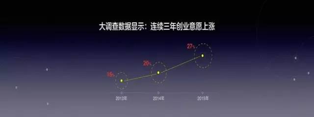 面向2016年,有創(chuàng)業(yè)意愿的受訪者比例高達27%,創(chuàng)業(yè)意愿連年攀升,“大眾創(chuàng)業(yè)、萬眾創(chuàng)新”熱潮在持續(xù)發(fā)酵。