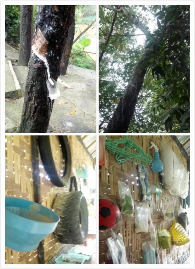 泰國(guó)從1991年起即成為世界最大的天然橡膠生產(chǎn)國(guó)和出口國(guó)。在這里隨處可見大片大片的橡膠園,據(jù)導(dǎo)游講,到了收獲季節(jié),天剛蒙蒙亮的時(shí)候,割膠工們便開始上山割膠了,太陽(yáng)一出來,膠汁就不流了。膠林里萬籟寂靜,耳邊聽得嚓嚓的割膠聲,乳白的乳膠順著割線流進(jìn)碗里。我們常說:“一分耕耘、一分收獲!”膠農(nóng)是真的的不容易??!