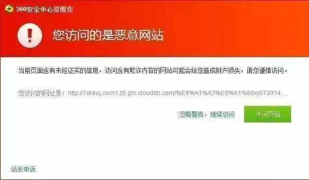 也有人根據(jù)截圖上的鏈接在電腦上打開,360提示為欺詐網(wǎng)站: