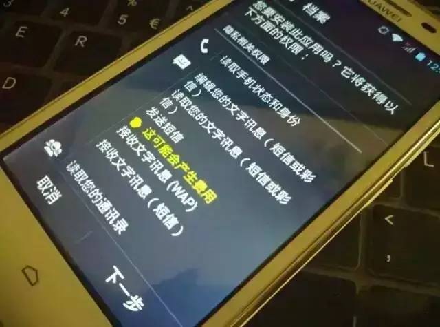 可以看到這個app偽裝的很好,名字就叫做“檔案”,細心的朋友會發(fā)現(xiàn),這個app還需要讀取手機身份以及短信甚至是通訊錄!一般的app都沒有這些權(quán)限需求的,顯然這是一個木馬病毒,記者就沒有繼續(xù)進行下一步了。
