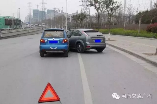 3、為避免發(fā)生次生交通事故,以及在處理事故時(shí)被當(dāng)成違法停車誤抓拍,請(qǐng)?jiān)谑鹿侍幚硗戤呏?,全程開啟雙閃燈,放置三角警示牌;