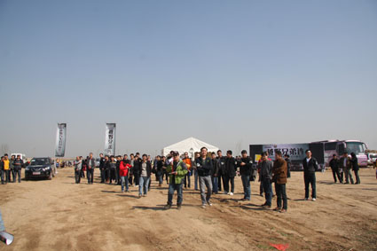 ?。ㄜ囉押嫌埃?br /> 報(bào)名參加這次越野活動(dòng)的河南交通廣播的愛心車友達(dá)到100多名?;顒?dòng)現(xiàn)場,上百號(hào)人讓平時(shí)寂靜的黃河灘熱鬧起來,河邊的一塊空地上,一百多面旗子在迎風(fēng)飄揚(yáng)——“河南交通廣播”的LOGO下赫然印著“越野汽車公開體驗(yàn)營”九個(gè)大字,背景板不遠(yuǎn)處,就是體驗(yàn)駕馭越野車的賽場。駝峰、馬蹄坑、滾木路障、彈坑路、沙土路、連續(xù)轉(zhuǎn)彎……墨綠色背景的提示牌讓越野的氣息撲面而來。