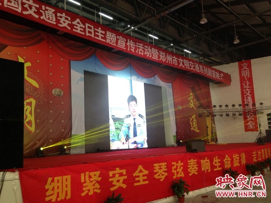 12月22日上午,12·2全國交通安全日主題宣傳活動暨鄭州市文明交通系列劇首映式在鄭州航空港區(qū)富士康科技園舉行。首映式將展示5部倡導(dǎo)文明交通的微電影,倡導(dǎo)交通參與者“摒棄交通陋習,安全文明出行”,河南省文明交通形象大使,河南交通廣播主持人南方,河南交通廣播主持人王驍主持了首映式。