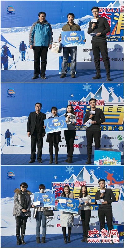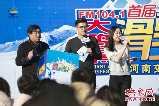 準(zhǔn)備工作已經(jīng)就緒,車友們已經(jīng)按捺不住要滑雪的心情了,在滑雪正式開始之前,1041《MORE FUN 音樂》主持人王哲和《馬路歡樂派—早間》主持人彎彎,禹州市大鴻寨臥佛山旅游開發(fā)有限公司總經(jīng)理王鋒偉先生也來給大家加油打氣了。