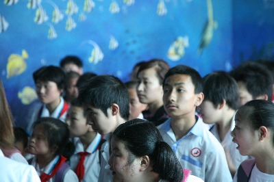 這批特殊孩子都是鄭州市二七區(qū)輔讀學(xué)校的在校學(xué)生,能夠在2012年六一兒童節(jié)來臨之際前往海洋館游玩,是大家多年以來的共同愿望。在三個(gè)多小時(shí)的時(shí)間里,信息廣播的編輯、記者、主持人領(lǐng)著智障、自閉癥兒童參觀了各個(gè)館舍。海豚館表演結(jié)束后,工作人員破例讓部分自閉癥孩子近距離與海豚接觸。由于海豚能發(fā)出多種波長的高頻超聲波(200至350千赫),對(duì)人的中樞神經(jīng)有激活作用,對(duì)自閉癥患兒有一定療效,孩子們臉上都露出燦爛的笑容,很多孩子都流下了激動(dòng)的淚水。