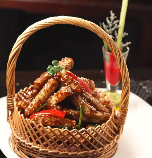嫩紫茄配上花生芝麻,外酥里嫩美味可口,特別適合女士和兒童。有詩(shī)為證: