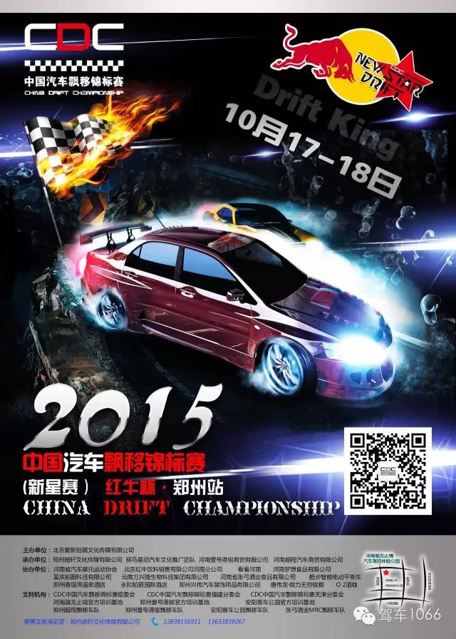 2015中國(guó)汽車(chē)漂移錦標(biāo)賽(新星賽)紅牛杯鄭州站10月17-18日兩天精彩上演1066必須也一定為大家謀取了門(mén)票福利。即日起至本月16日發(fā)送“漂移+姓名+電話號(hào)碼”至“駕車(chē)1066”公眾微信號(hào)即可獲得票價(jià)268元的門(mén)票兩張,雖說(shuō)福利,你懂得!先報(bào)名先得,手快有手慢無(wú)哦……
