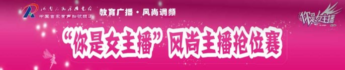 2011年12月16日,黃河科技學(xué)院,能容納1000多人的音樂廳座無虛席,由河南人民廣播電臺(tái)、河南省學(xué)生聯(lián)合會(huì)主辦、教育廣播承辦的“你是女主播大賽·風(fēng)尚主播搶位賽”決賽正在如火如荼地舉行。從全省40多所高校、5000多名報(bào)名者中脫穎而出的12位晉級(jí)選手各展絕技,你方唱罷我登場,在經(jīng)過了“聽我微節(jié)目”(100秒微節(jié)目展示);“臨危不懼”(危機(jī)主持、現(xiàn)場采訪教育廣播風(fēng)尚調(diào)頻女主播)及“真我風(fēng)采”(個(gè)人才藝展示)三輪激烈角逐后,最終鎖定一、二、三等獎(jiǎng),而三個(gè)多小時(shí)的巔峰對(duì)決,也為現(xiàn)場的觀眾和收音機(jī)前的聽眾呈現(xiàn)了一場精彩的視聽盛宴。