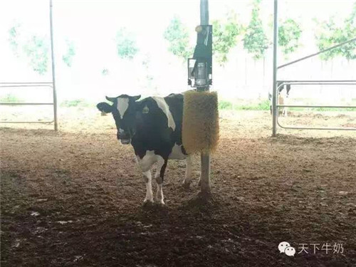 自動(dòng)按摩器:只要奶牛觸動(dòng)它,它就開(kāi)始旋轉(zhuǎn),可以對(duì)奶牛進(jìn)行按摩。這些奶牛也有“組織”,誰(shuí)先誰(shuí)后來(lái)按摩都有“規(guī)矩”。