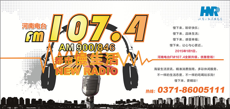 2015年1月1日,河南電臺(tái)FM107.4慢生活NewRadio全新升級(jí),優(yōu)雅登場(chǎng)!海量生活資訊,精準(zhǔn)消費(fèi)指南,多彩休閑服務(wù),不一樣的生活態(tài)度,不一樣的吃喝玩樂購(gòu)!慢下來,我的“心”常態(tài)!河南電臺(tái)1074慢生活NewRadio(FM107.4 AM900/846)。