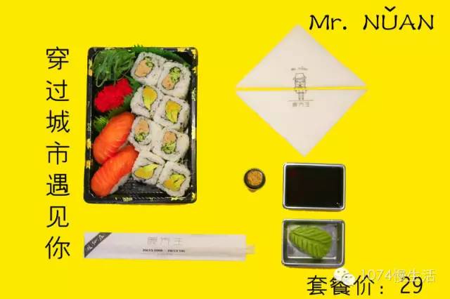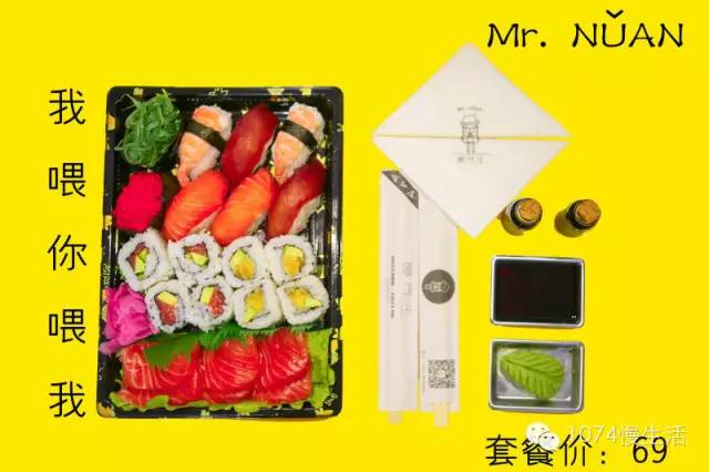 壽司套盒很精致有木有?名字也起的很逗趣就像今天的天氣,雨天不便出行,又想一個人宅在家里過一個慵懶的周末的話,定個一人套餐再合適不過了。