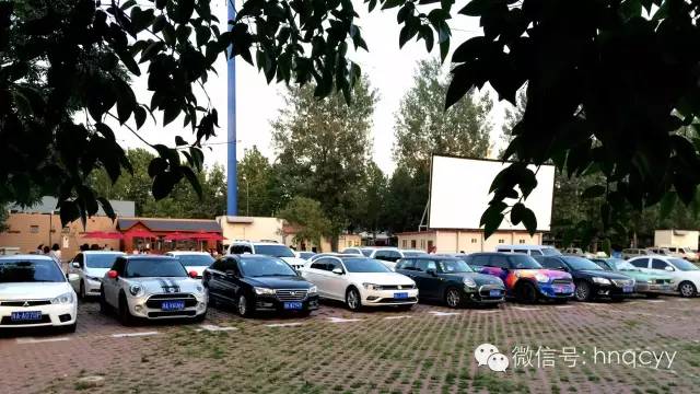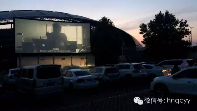 天漸漸暗了下來(lái) 電影準(zhǔn)時(shí)開始 美女們相應(yīng)都被邀請(qǐng)到車上去看電影了
