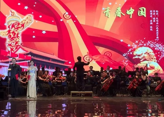接下來欣賞由李翔、張悅兩位老師帶來的配樂詩朗誦《青春中國》