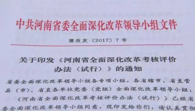 今年7月《河南省全面深化改革考核評(píng)價(jià)辦法》正式出臺(tái),表?yè)P(yáng)先進(jìn)、懲戒落后、追效問(wèn)責(zé),考核評(píng)價(jià)辦法成為一支有力的“指揮棒”。