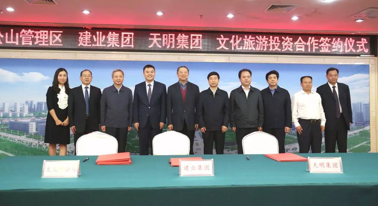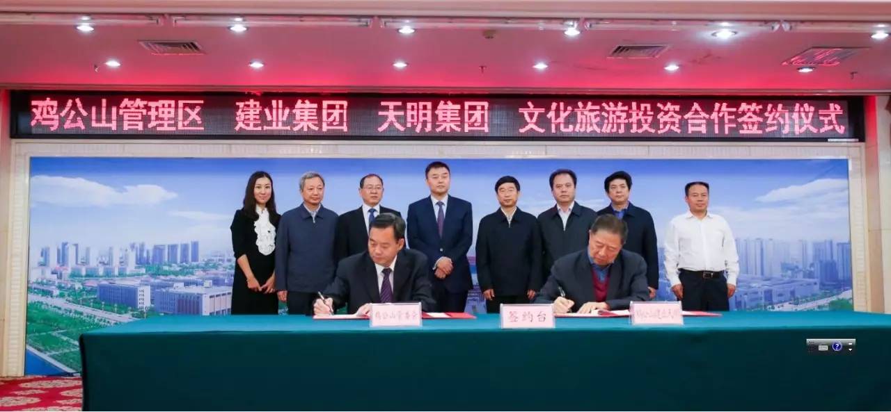 2017年9月2日上午,雞公山管理區(qū)與建業(yè)集團、天明集團在信陽市舉行文化旅游投資會暨簽約儀式。此次簽約項目總面積287平方公里,初步構(gòu)思“一園十三景”,計劃總投資300~500億元。未來,兩家企業(yè)將攜手打造文化旅游項目,助力信陽雞公山脫貧攻堅、建設(shè)美麗鄉(xiāng)村。信陽市市委書記喬新江、市長尚朝陽、建業(yè)集團董事長胡葆森、建業(yè)集團聯(lián)席董事長劉衛(wèi)星、建業(yè)集團副總裁陳劍、天明集團董事長姜明、天明城建集團總裁郭穎、雞公山管委會黨委書記、主任趙安虎等領(lǐng)導出席簽約儀式。