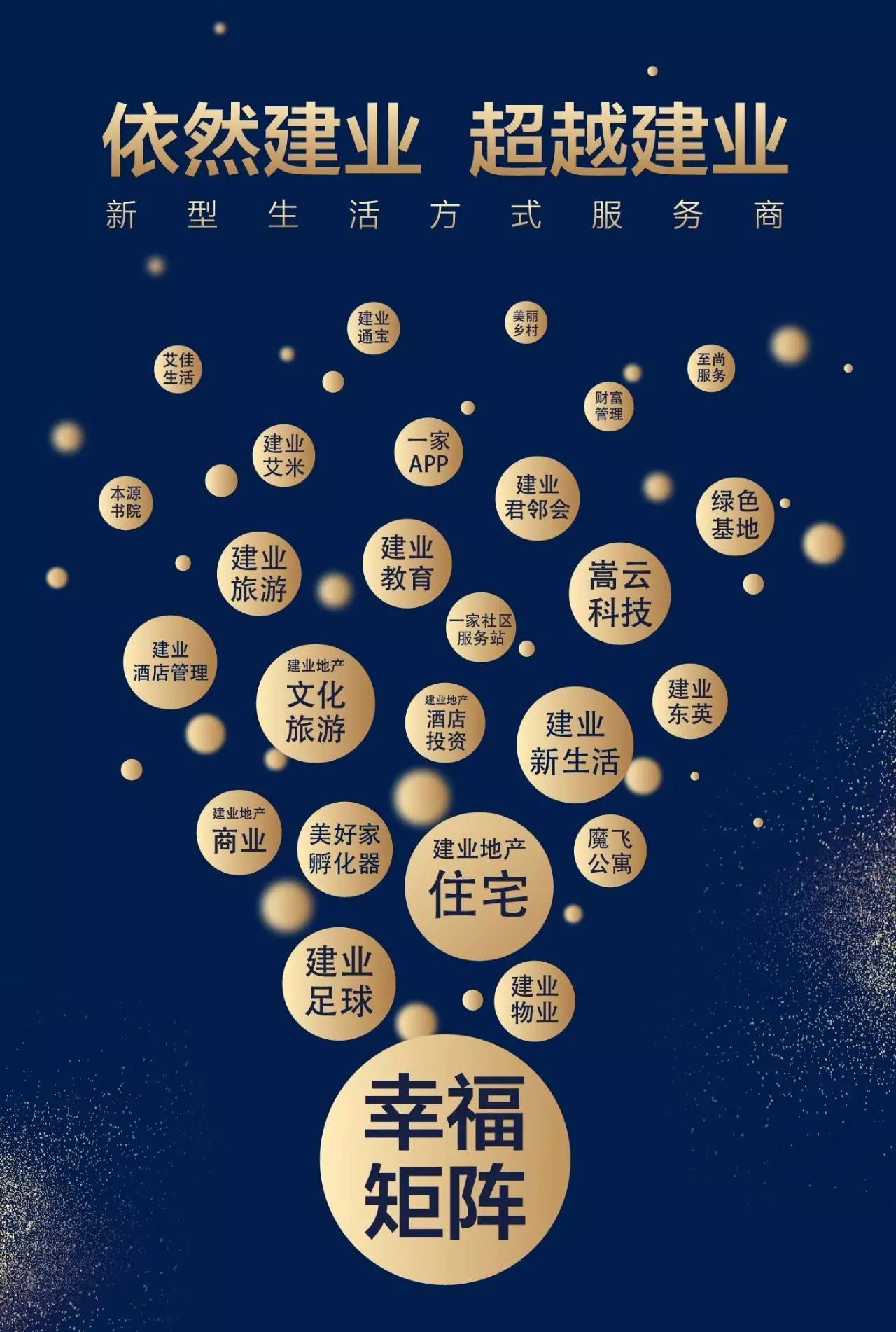 在消費升級、需求多元及互聯(lián)網(wǎng)普及等大背景下,遵循市場變化及客戶需求積極轉(zhuǎn)型,建業(yè)集團于2015年正式開啟由“房地產(chǎn)開發(fā)商”向“新型生活方式服務商”戰(zhàn)略轉(zhuǎn)型。深度思考“建業(yè)+地產(chǎn)、+文化、+旅游、+農(nóng)業(yè)、+商業(yè)、+教育、+體育、+酒店、+科技、+金融”的大商業(yè)生態(tài)發(fā)展之道。