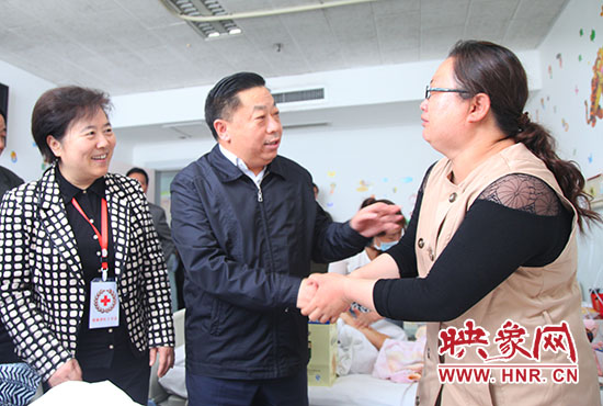 映象網訊(記者 王寬 文/圖)4月23日上午,河南省援疆工作前方指揮部總指揮劉金山、河南省紅十字會黨組書記、常務副會長趙國新一行來到河南省胸科醫(yī)院病房,看望來自新疆哈密地區(qū)的10名先心病患兒及家屬。這10名患兒是河南省紅十字會開展“豫新緣紅十字愛心行動”的第二批救助對象,他們剛剛順利實施了手術治療。