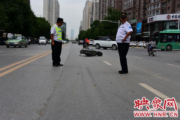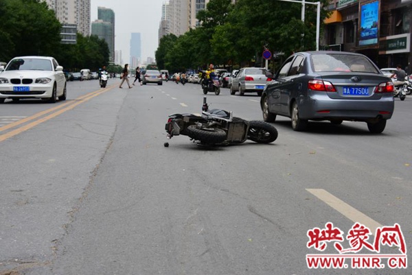 映象網(wǎng)快訊(記者 邱延波 文/圖)9月5日中午12時(shí)許,鄭州市福元路上,一輛電動(dòng)車(chē)疑與出租車(chē)發(fā)生碰撞,電動(dòng)車(chē)上的15歲女生倒地后昏迷不醒。隨后,出租車(chē)離開(kāi)現(xiàn)場(chǎng),熱心市民騎電動(dòng)車(chē)狂追涉嫌肇事的出租車(chē)并將其攔下。