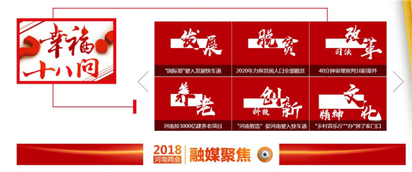 據(jù)不完全統(tǒng)計,截至1月30日,河南廣播電視臺大象融媒在2018年省兩會報道中,共發(fā)布視頻直播、微視頻、圖文報道、H5、獨家策劃、圖解、口播報道超過千條,累計點擊播放閱讀量達(dá)3790萬人次。