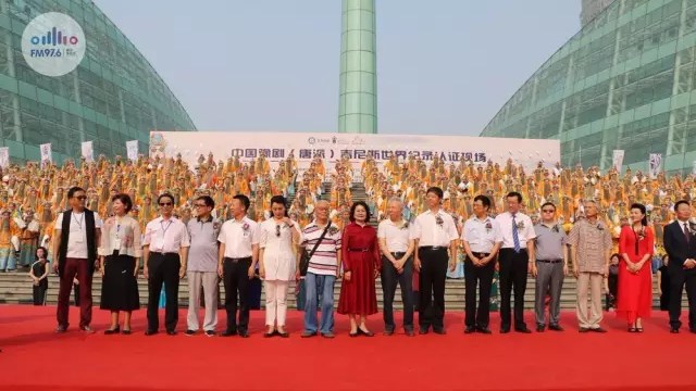 432名專業(yè)演員和票友身穿龍袍同時(shí)演唱唐派名劇選段,創(chuàng)造新的吉尼斯世界紀(jì)錄。