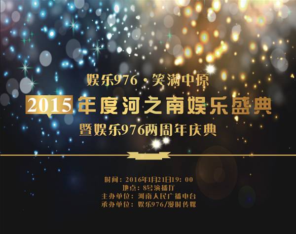 2016年1月21日,8號(hào)演播廳,河之南娛樂(lè)盛典2015年度頒獎(jiǎng)典禮娛樂(lè)976兩周年慶典即將呈現(xiàn)!