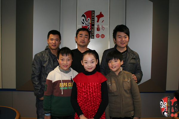 王希玲藝校學(xué)生、梨園春明星擂主席超(后左一)、王希玲藝校 校長(zhǎng)陰志勇(后中)、河南電臺(tái)戲曲廣播當(dāng)家小生月陽(yáng)(后左三)、王希玲藝校學(xué)生、梨園春明星擂主徐帥文(前左一)、王希玲藝校學(xué)生、梨園春明星擂主連小爽(前左二)、來自朝陽(yáng)溝的小栓寶、王希玲藝校學(xué)生趙藝多