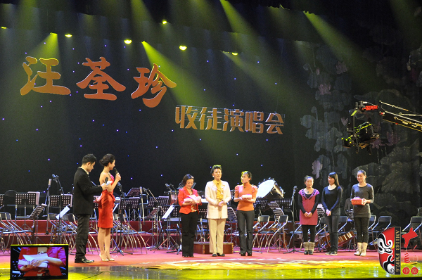 本次成為汪荃珍徒弟的分別是許昌市豫劇團(tuán)的何艷芳和三團(tuán)的韓亞冰,在拜師儀式上,著名戲劇評(píng)論家荊樺用“常大師的好學(xué)生、舞臺(tái)上的好演員、劇團(tuán)里的好團(tuán)長(zhǎng)、朋友們的好朋友”來(lái)形容汪荃珍,汪荃珍自己也說(shuō),要銘記常香玉大師的教誨——“先做人,后演戲,戲比天大”,為戲曲事業(yè)培養(yǎng)更多優(yōu)秀人才。讓人印象深刻的是,汪荃珍沒(méi)有按照傳統(tǒng)的形式接受弟子的行禮,而是與弟子攜手共同向全場(chǎng)觀眾三鞠躬致意,贏得了觀眾們熱烈的掌聲,之后,汪荃珍與兩位弟子一起表演了《香魂女》當(dāng)中的經(jīng)典選段,將整場(chǎng)演出的氣氛推向了高潮。