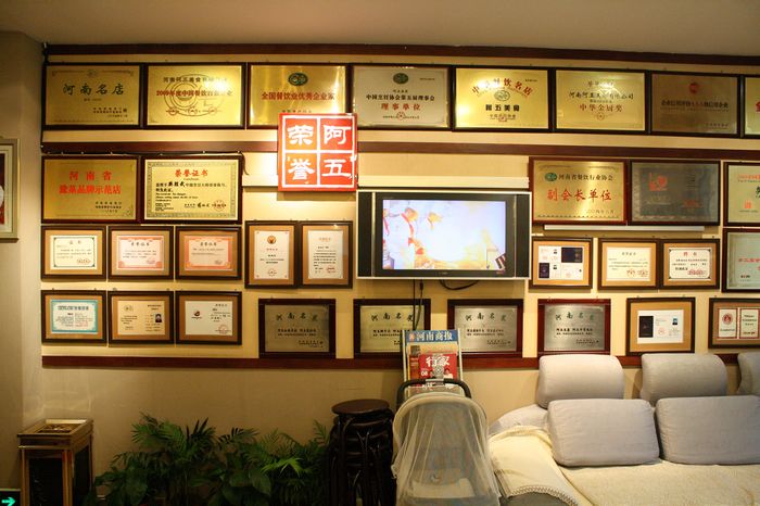 滿滿一面墻的獎(jiǎng)狀讓每一個(gè)來這里的人都能深刻的了解到阿五美食的嚴(yán)謹(jǐn)風(fēng)格,