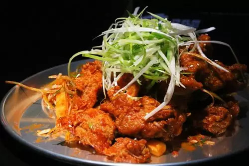 美味的韓國(guó)炸雞,被天使朋友們店名很多次了,今天我們就來(lái)嘗嘗看:進(jìn)店必點(diǎn)的紅醬炸雞,裹滿醬汁的炸雞色澤誘人,外酥內(nèi)軟的酸甜口味,末了帶著些辣味,搭配蔥絲最佳,還有酸甜口的黑醬炸雞可選。