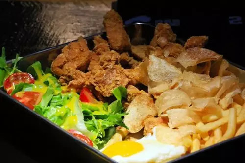 輕輕地咬上一口,裹在雞皮外面的脆皮恰到好處,薄薄的一層,咬一口,酥酥的,脆脆的,鮮美Q彈的雞肉在里面蠢蠢欲動(dòng),炸雞拼盤內(nèi)的超薄薯片,酥酥脆脆,甘愿發(fā)胖也停不下來(lái)的想要狂吃。