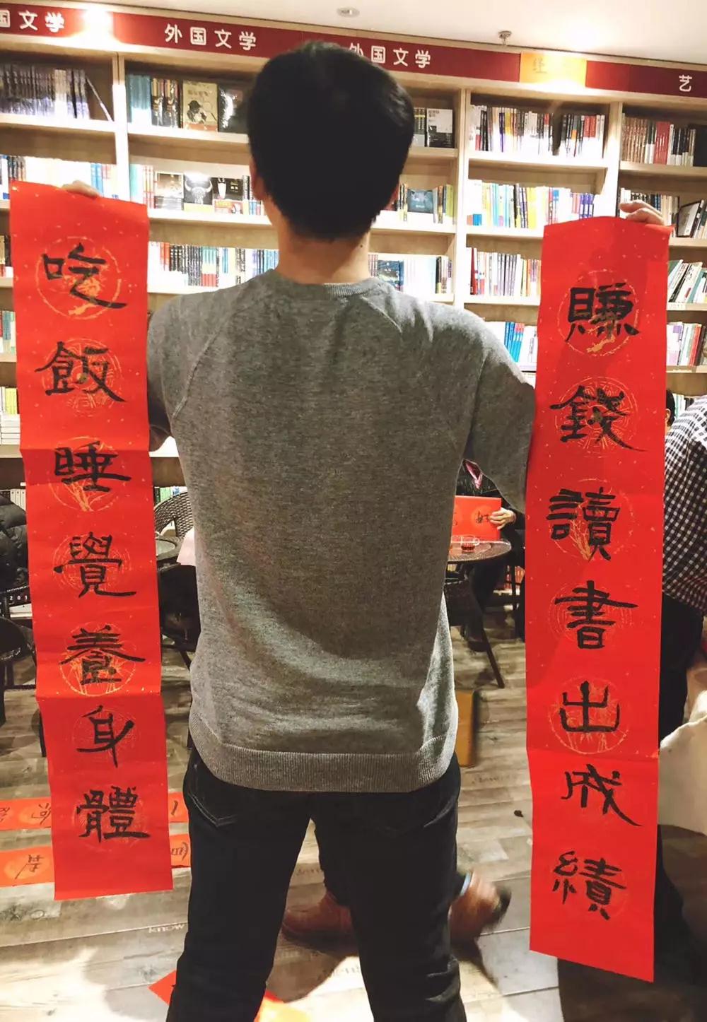 在錦藝城三樓尚書房書店為大家發(fā)春聯(lián)