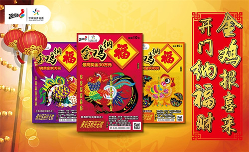 每逢歲末年初,頂呱刮都會推出賀歲票,今年也不例外,雞年賀歲票“金雞納福”提前與彩民們見面了。該票有紅、紫、黃三款,以寓意吉祥如意的錦雞為主題,絢麗的色彩中透露出濃濃的中國風(fēng)。單張面值10元,有12次中獎機會,最高獎金30萬元,游戲形式為:刮開覆蓋膜,在任意一場游戲中如果出現(xiàn)兩個相同的“雞”標(biāo)志,即中得該場游戲右方所示的金額;如果出現(xiàn)“?!睒?biāo)志,即中得該場游戲右方所示金額的兩倍。