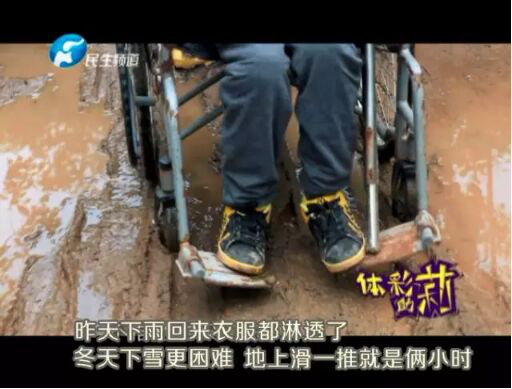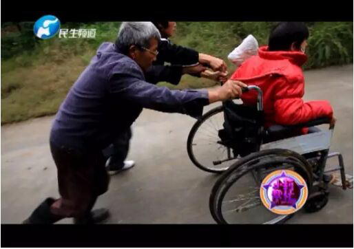 [摘要] 每周的兩三天時(shí)間里,一段頗不好走的山路上,總會(huì)出現(xiàn)這樣一家人的身影,坐在輪椅上的是女兒愛平,年僅42歲的她患尿毒癥已有十多年。