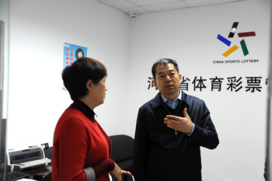 河南省體育局局長(zhǎng)、黨組書(shū)記李俊峰在調(diào)研中聽(tīng)取省體彩中心工作匯報(bào)