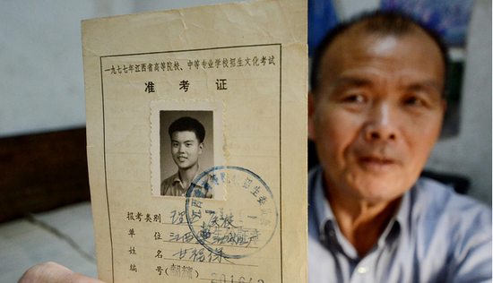 1978年夏天,迎來恢復(fù)高考后的第二次考試,考試結(jié)束后,甘福保跑到高招辦買了試卷回來自己做,從此后,他就一發(fā)不可收拾,每年高考都會買一份試卷回來,一直堅持到2016年的高考。圖為甘福保展示當年高考時的準考證。